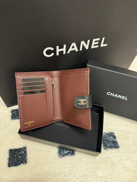 Chanel passport holder 黑色荔枝皮金扣