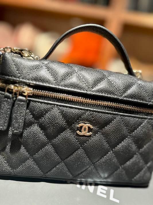 Chanel LP 黑金荔枝皮淡金扣