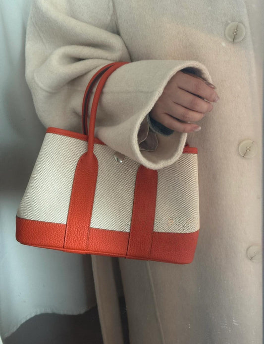 Hermes Mini garden party 橙色拼白色帆布 K stamp