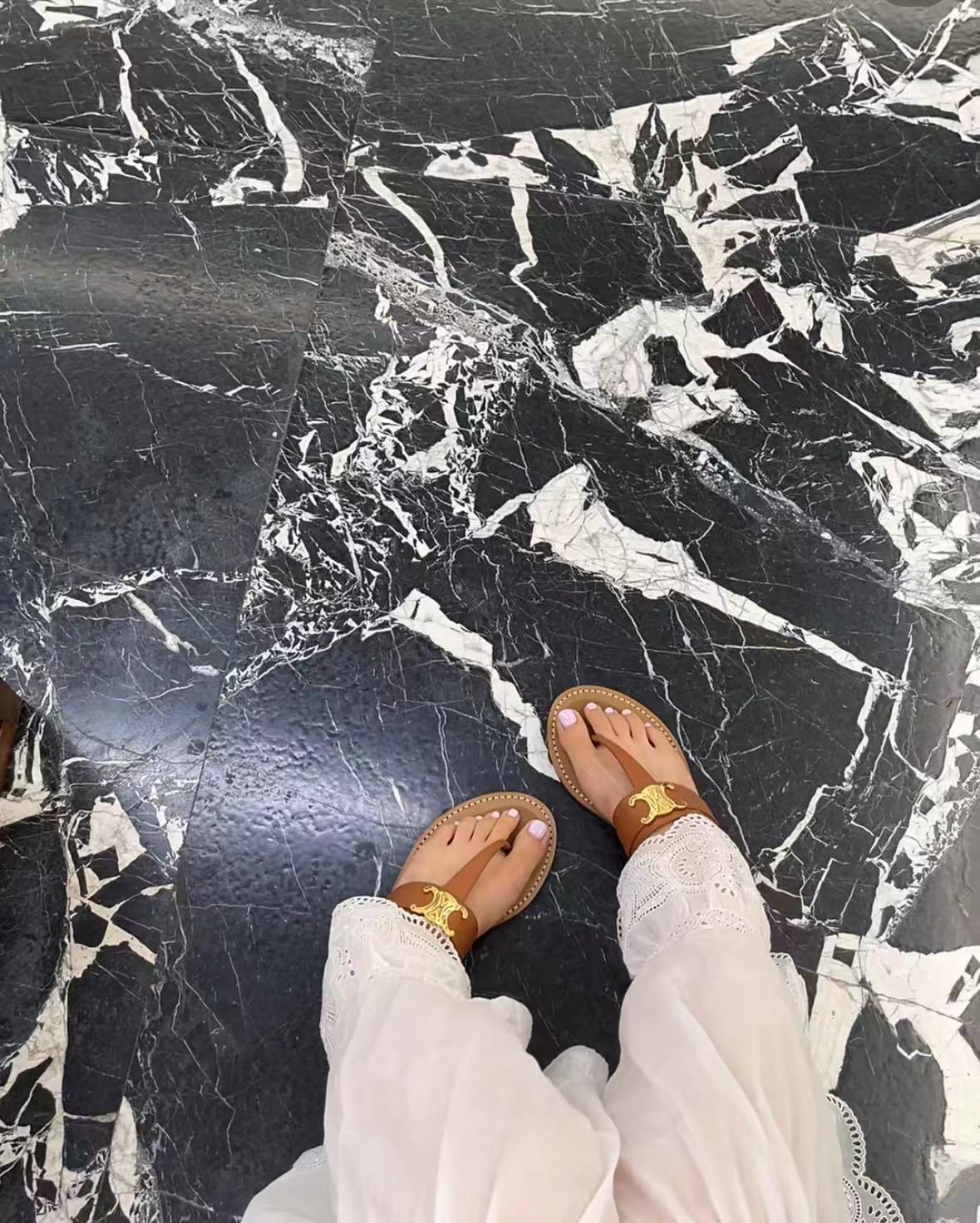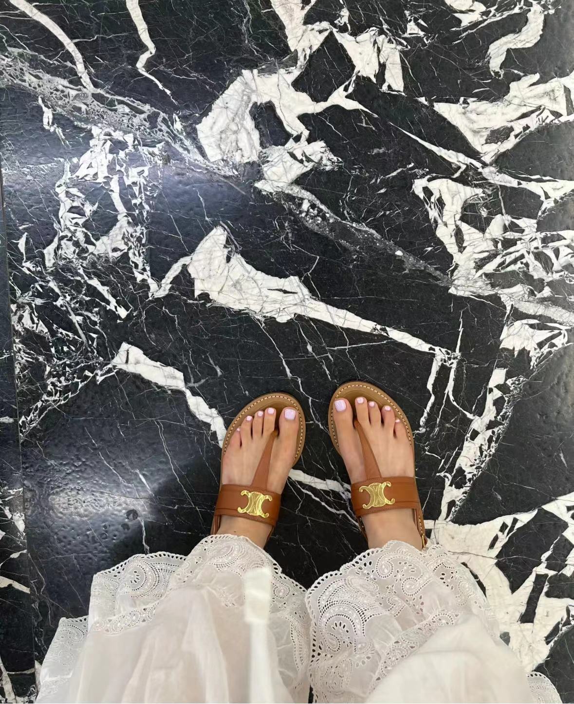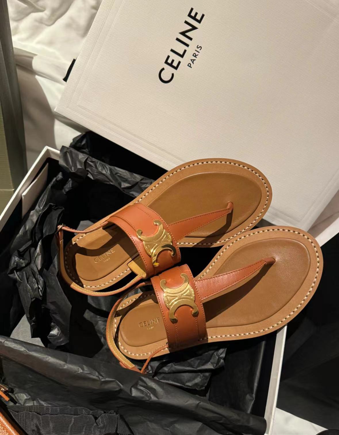 CELINE LYMPIA TRIOMPHE THONG IN CALFSKIN TAN