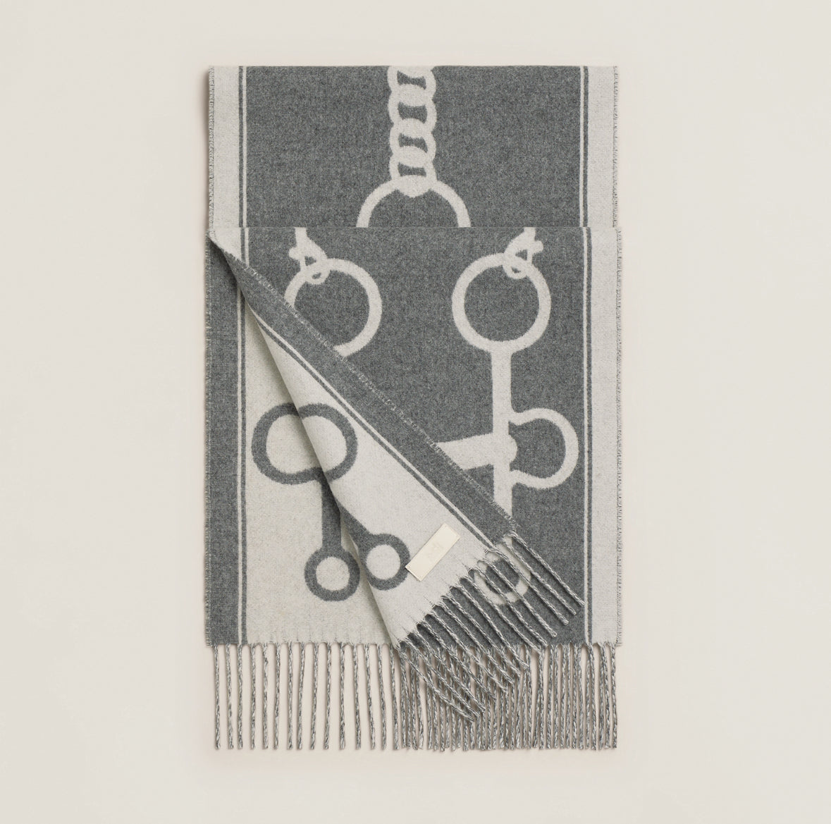Hermes Casaque Mors scarf Ivoire / Gris Flanelle